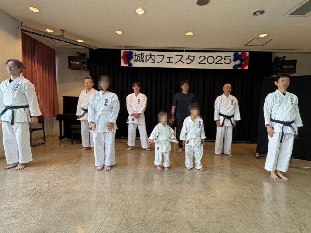 2025年10月20日 / 最終更新日時 : 2025年10月20日 hiraoka イベント情報 城内フェスタ2025にて演武を行いました 昨年に引き続き、城内公民館で毎年行われるお祭り「城内フェスタ」のサークル活動発表の場に全員で参加、空手基本技や型の演武を披露しました。子供たちは緊張で固まることなく、しっかり頑張ってました。